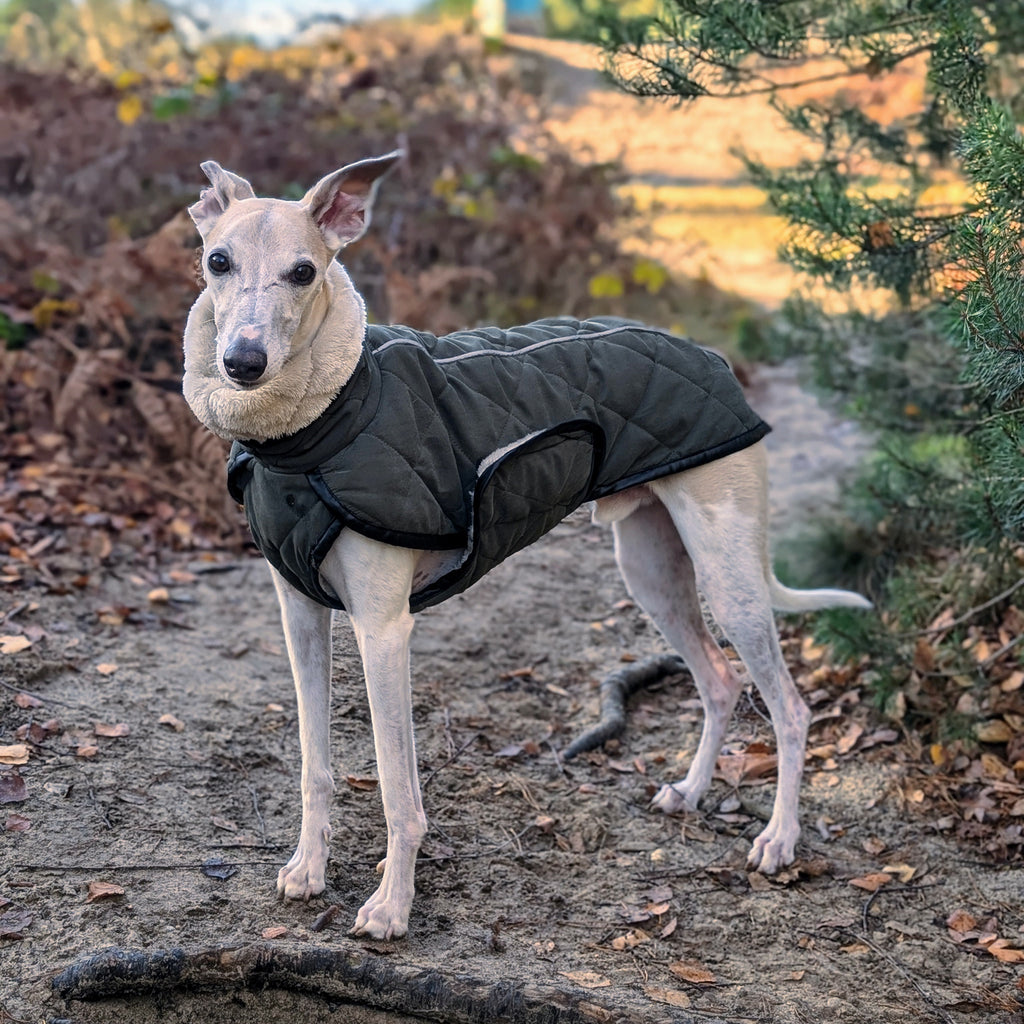 Warmer Hundemantel für Windhunde Ridgebacks und weitere – grün gesteppt, wasserabweisend & kuschelig