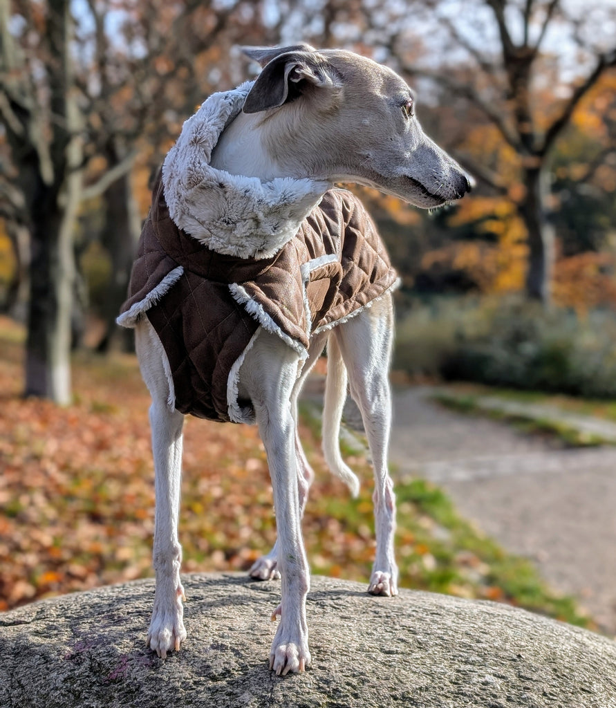 Exklusiver Wollmantel mit Reißverschluss für Windhunde, Whippets, Greyhhound, Galgo, Podenco und weitere