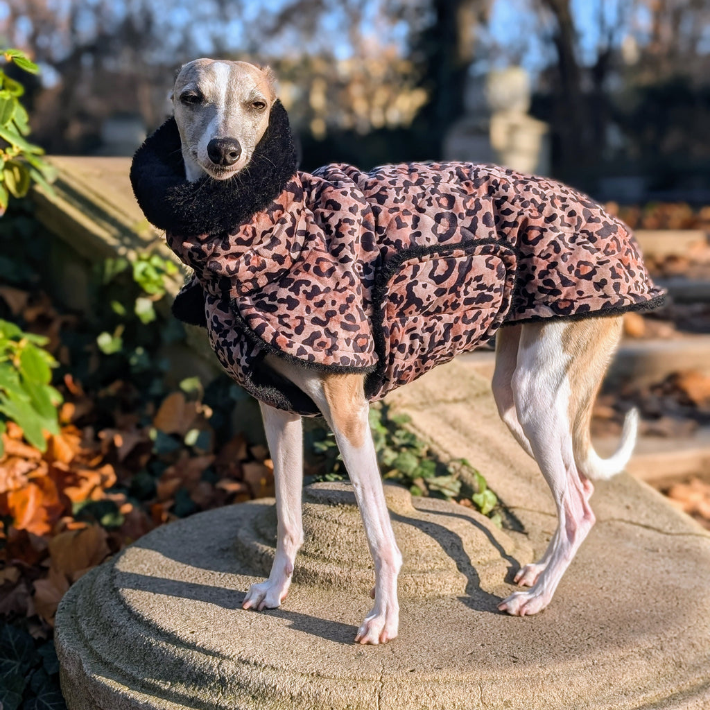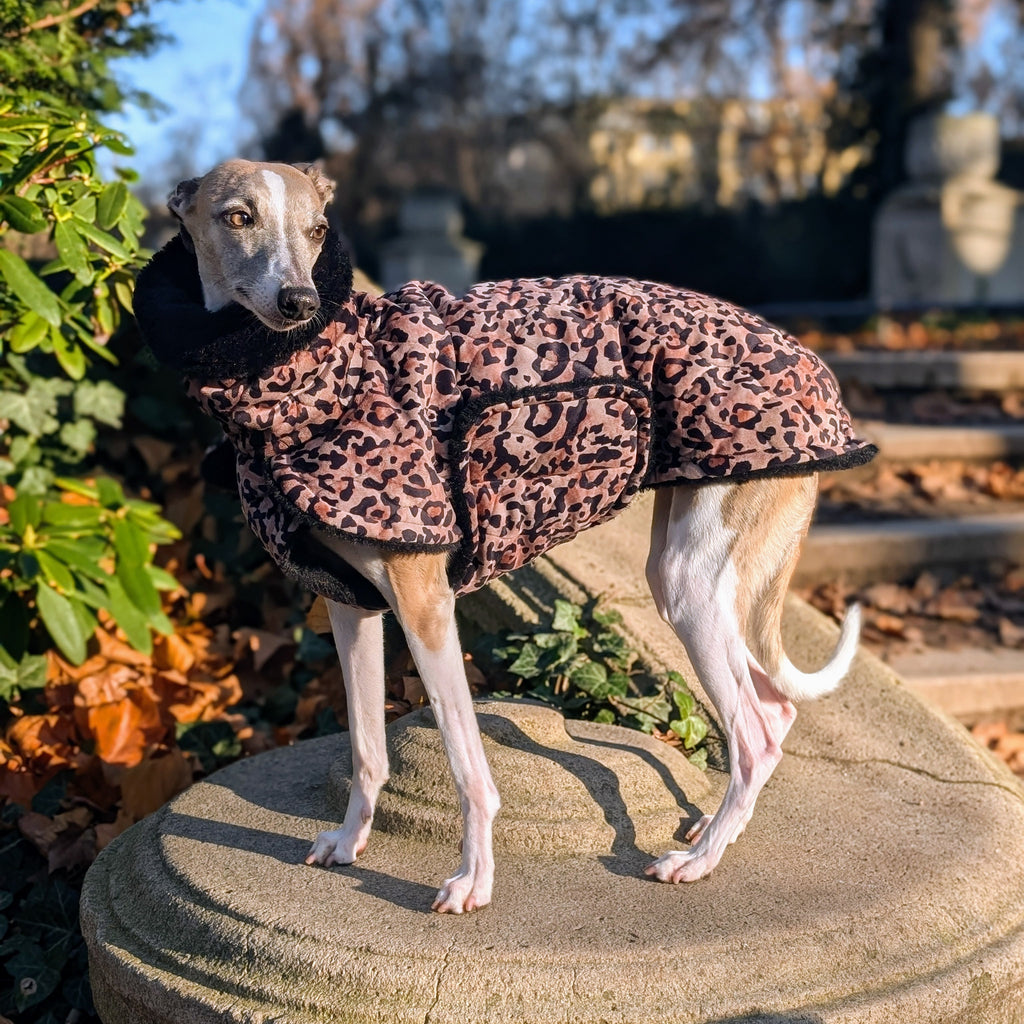 Stylischer Hundemantel für Windhunde Ridgebacks und weitere – Leoparden-Design, warm & auffällig