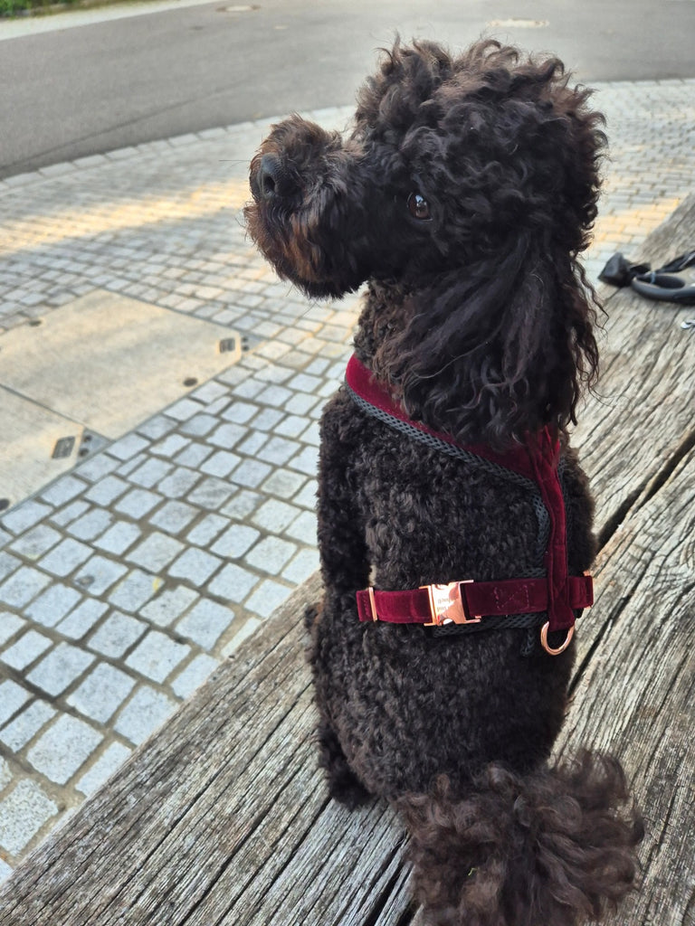 Luxuriöses Samt Hundegeschirr in Dunkelrot - Bequeme und stilvolle Passform