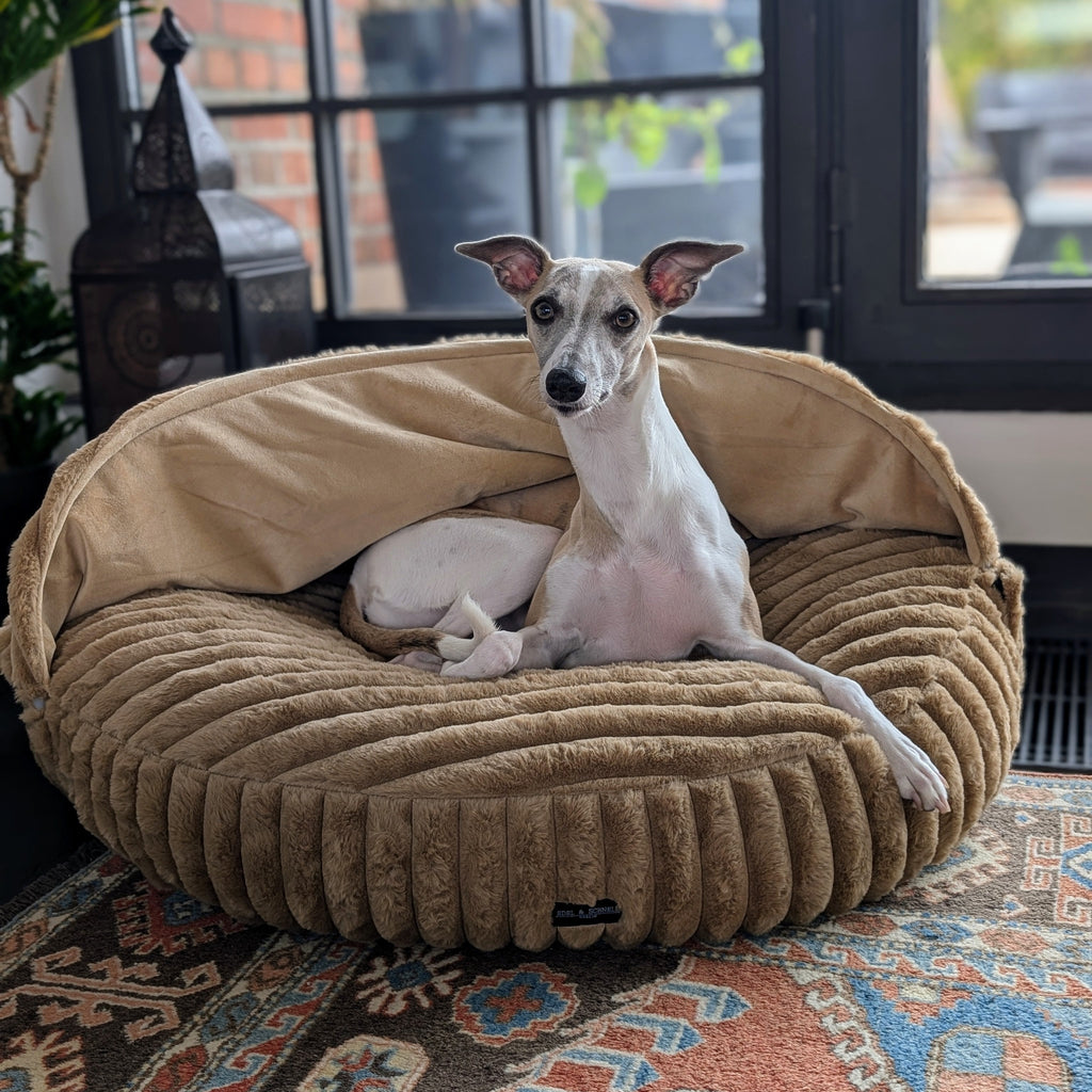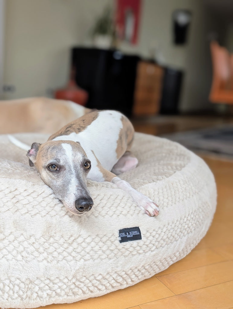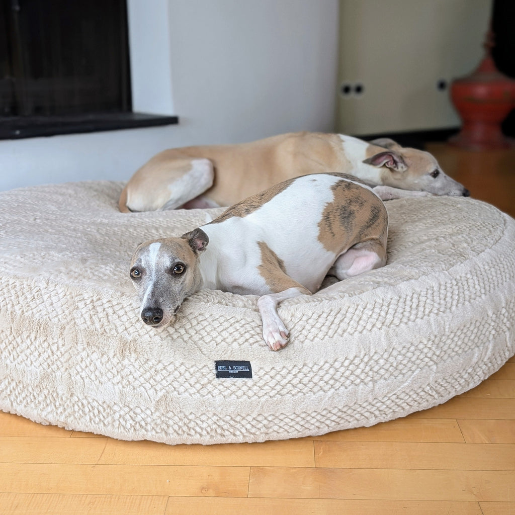 Flocke Hundebett Bezug aus kuscheligem beigem Kuschelplüsch