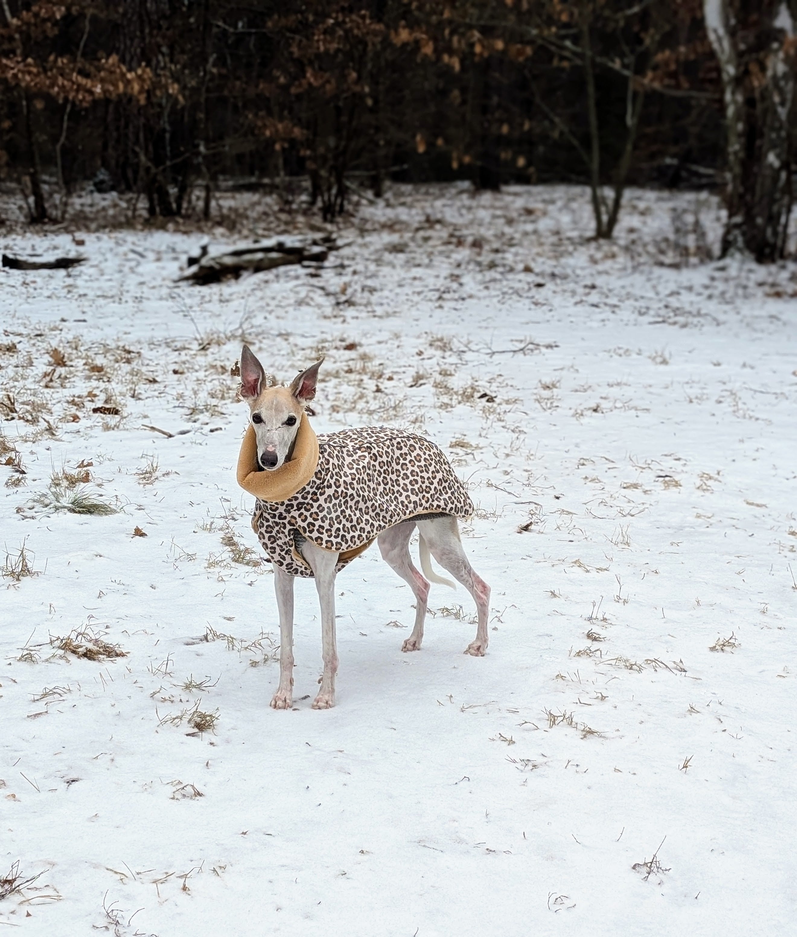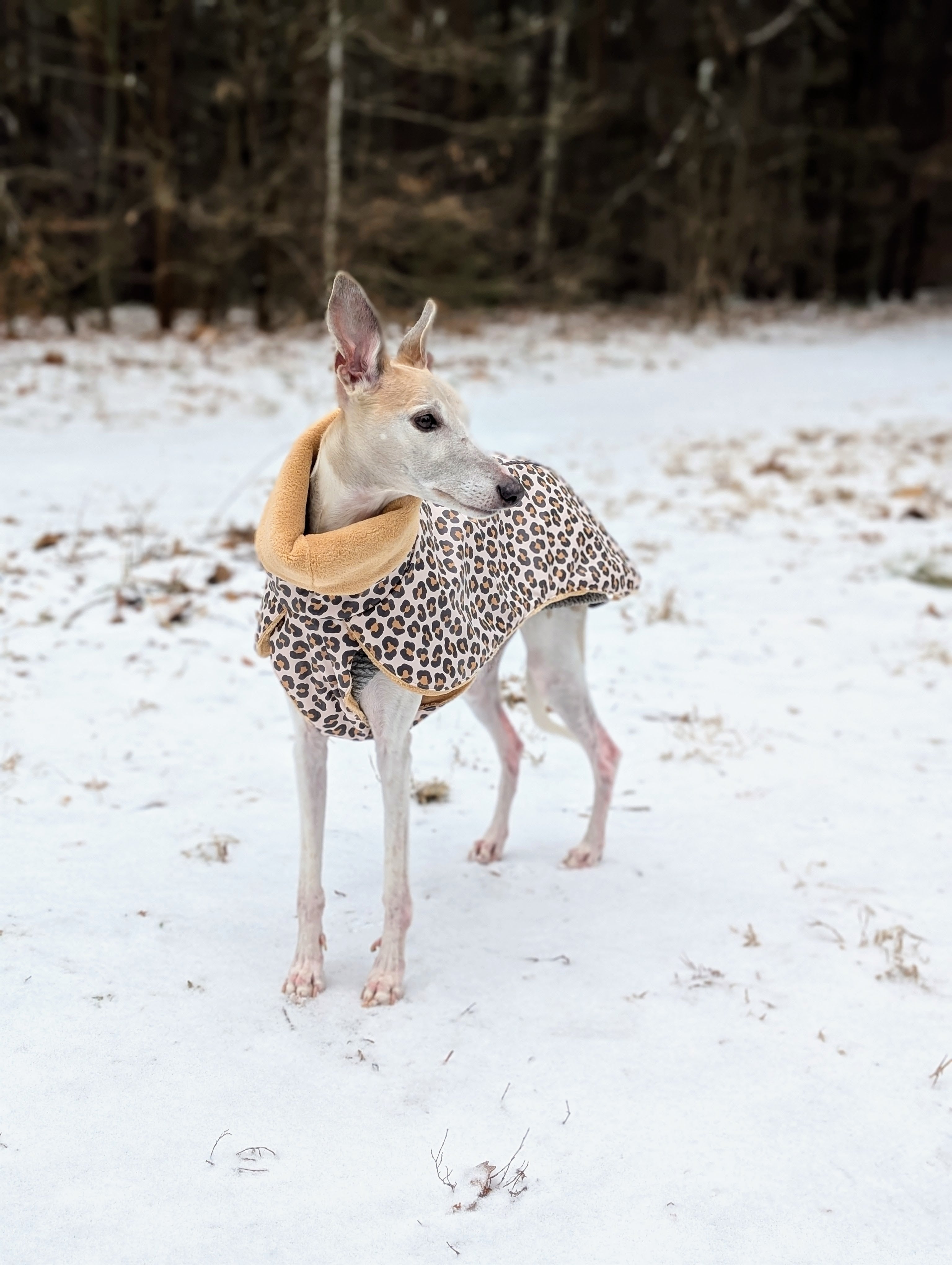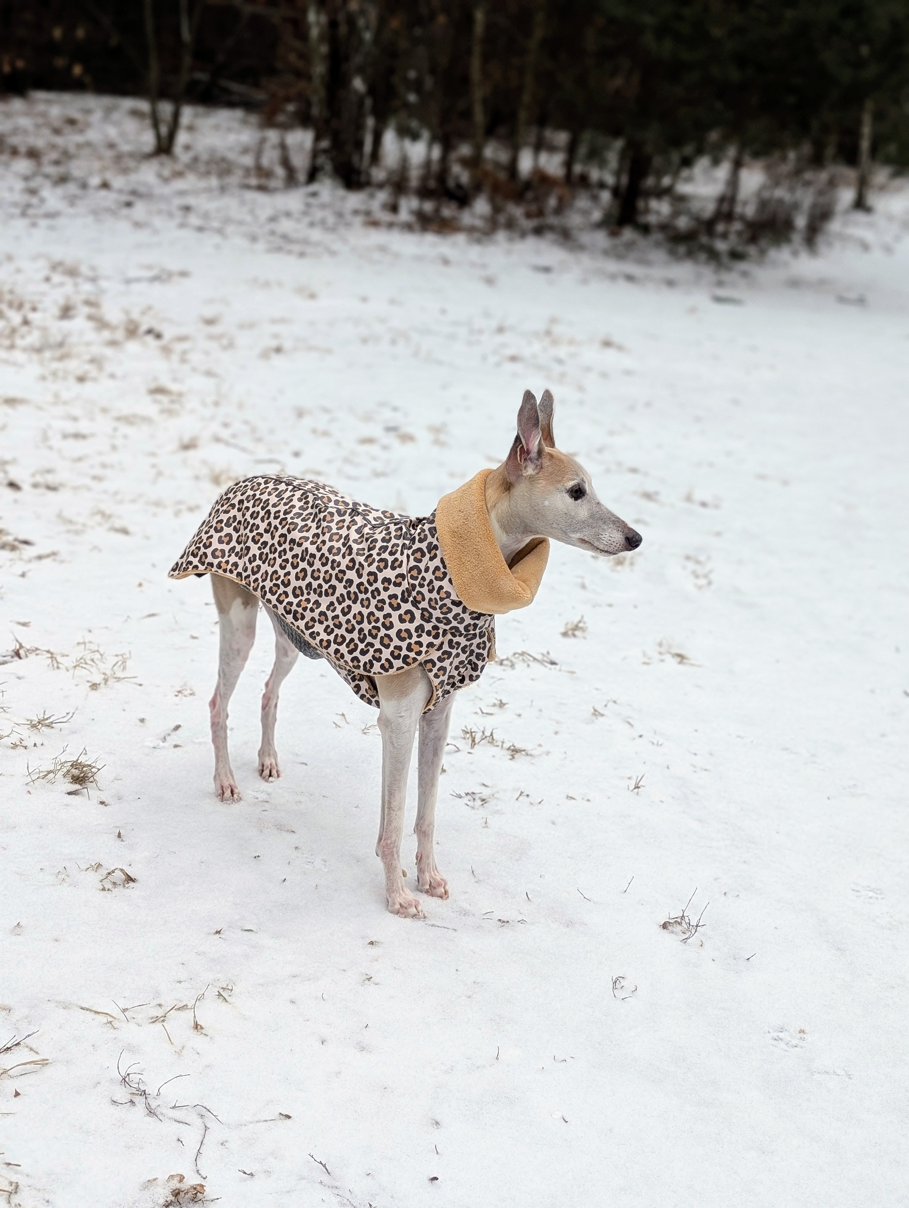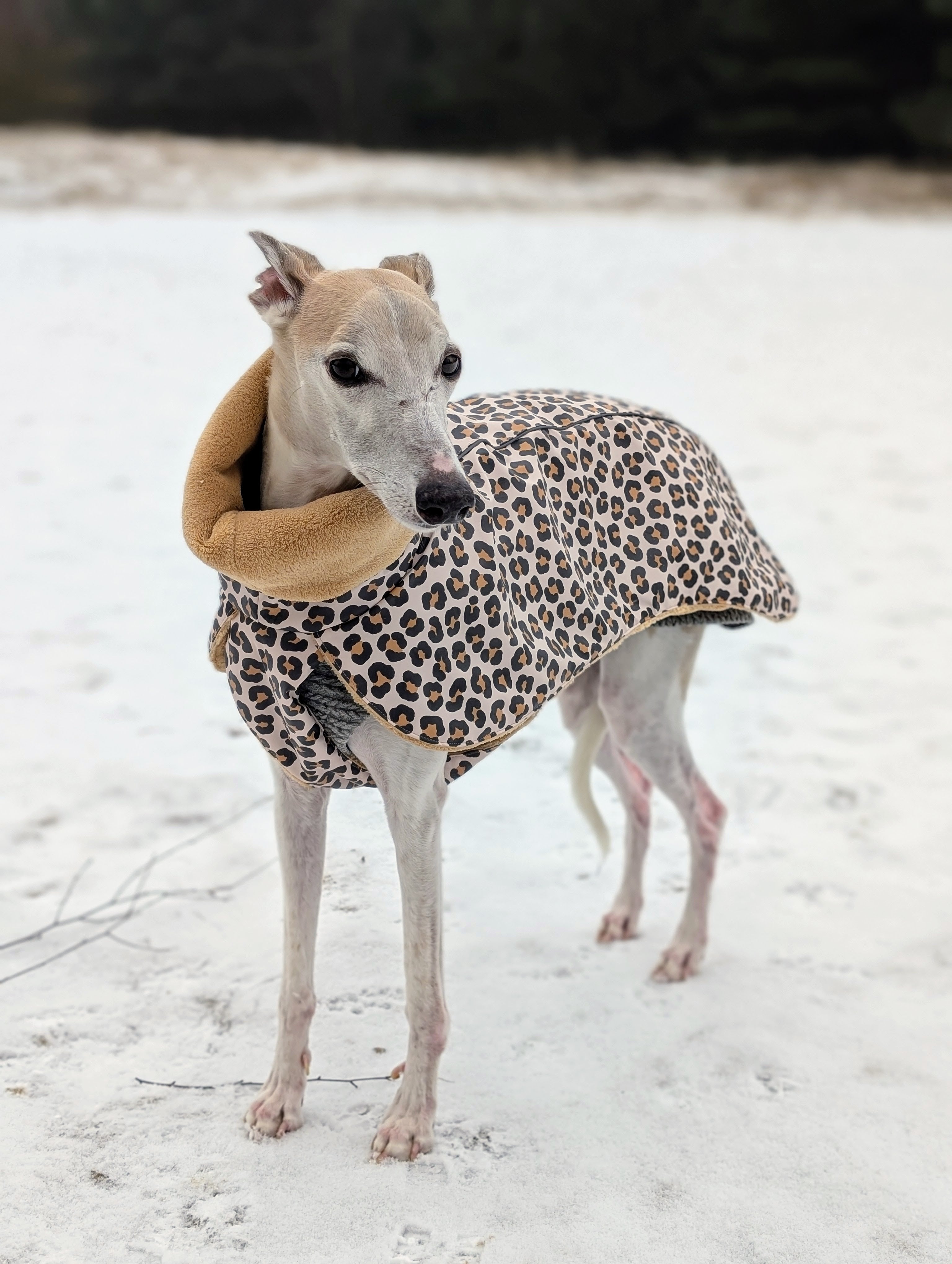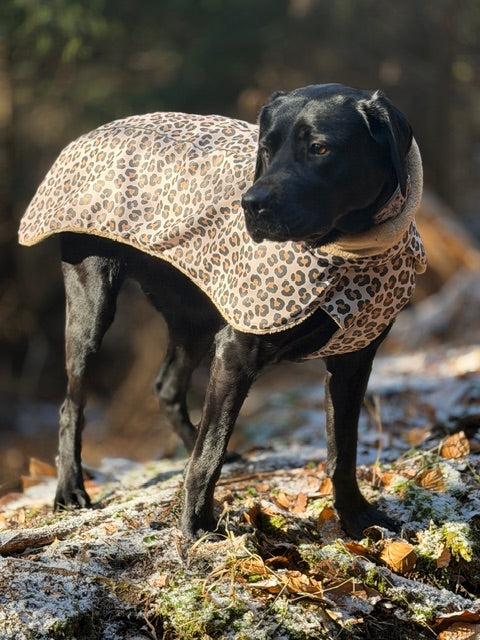 Der Regenmantel „Digital Leopard“ vereint modernes Design mit funktionaler High-Performance. Das wasserabweisende Aqua-Protect-Material schützt zuverlässig vor Regen und Wind, während das angenehm warme Coral-Fleece-Innenfutter in elegantem Caramelton für kuschelige Wärme sorgt. Eine zusätzliche Watteschicht bietet extra Isolation an kalten Tagen – perfekt für Spaziergänge bei Wind, Regen und winterlichen Temperaturen. Der verlängerte Schnitt schützt Rücken und Rutenansatz optimal und ist ideal für Windhunde und andere schlanke Hunderassen. Im Inneren sorgt ein innenliegender Klettverschluss für eine vollständig geschlossene Passform – dadurch ist der Mantel absolut regendicht und verhindert zuverlässig das Eindringen von Nässe. Leicht, flexibel und komfortabel – für maximale Bewegungsfreiheit bei gleichzeitigem Schutz. Perfekt für stilvolle Winterspaziergänge bei Regen und Kälte. 🐾✨