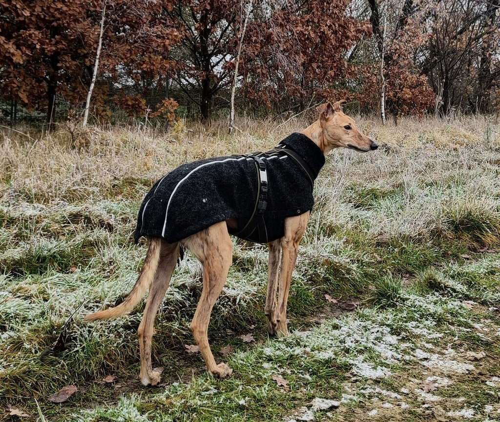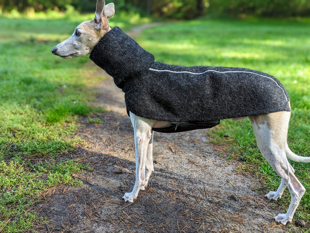 Exklusiver Wollmantel mit Reißverschluss für Windhunde, Whippets, Greyhhound, Galgo, Podenco und weitere