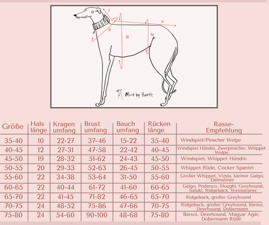 Hier finden Sie unsere Größentabelle: https://edelundschnell.com/pages/richtige-groesse-ihren-hund